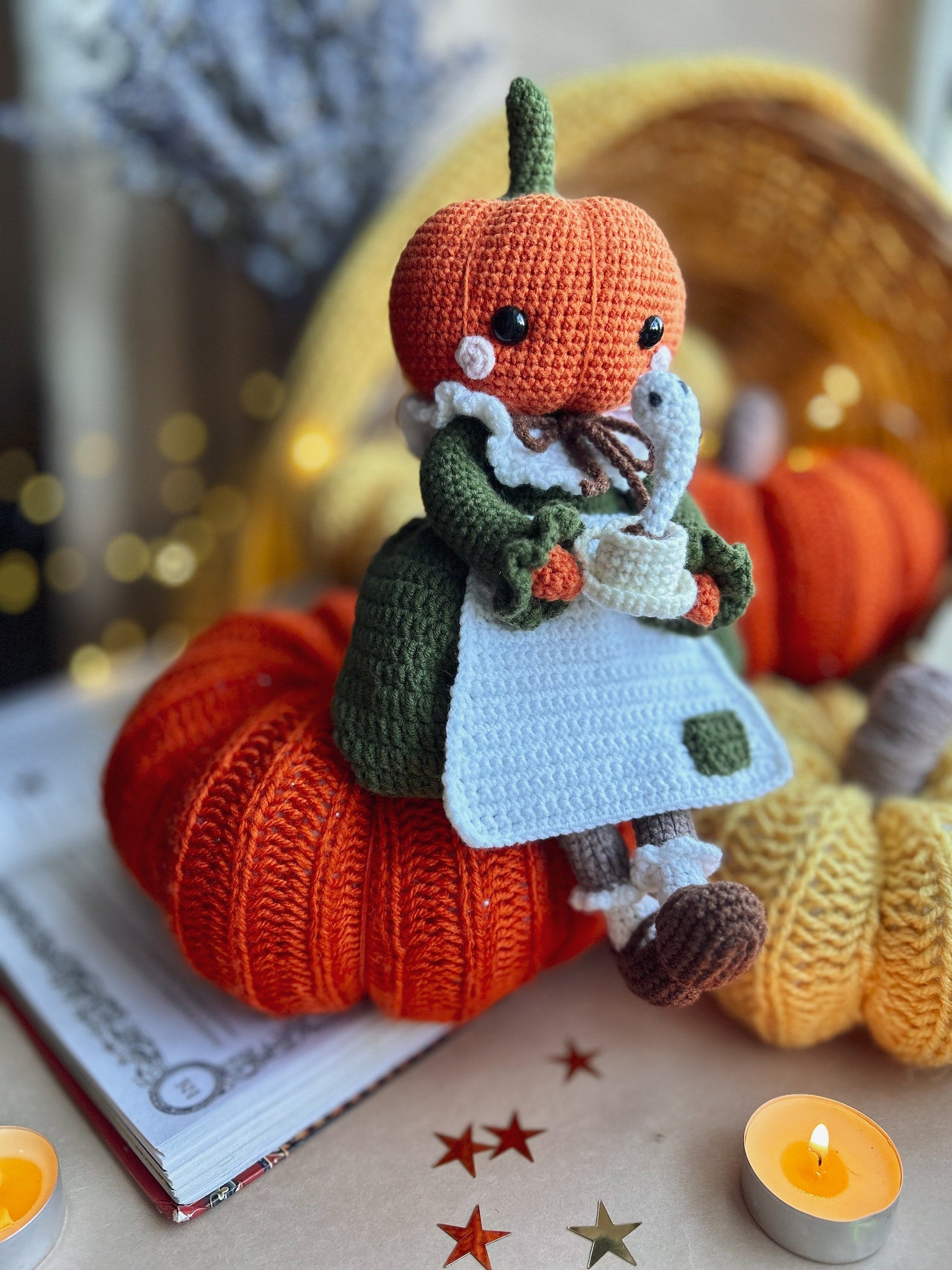 The finished toy is about 28 cm tall, perfect for decorating your home in autumn or giving as a unique handmade gift.
